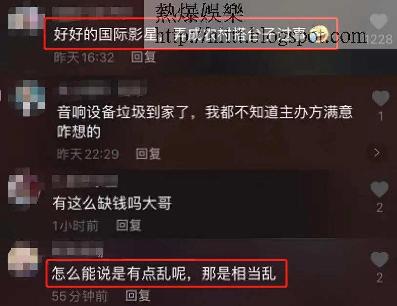 睇見國際巨星成龍要喺咁嘅場合唱歌,就連一眾大陸網民都嘲笑成龍係咪等錢使,要喺一個貌似農村搭嘅台度唱歌。