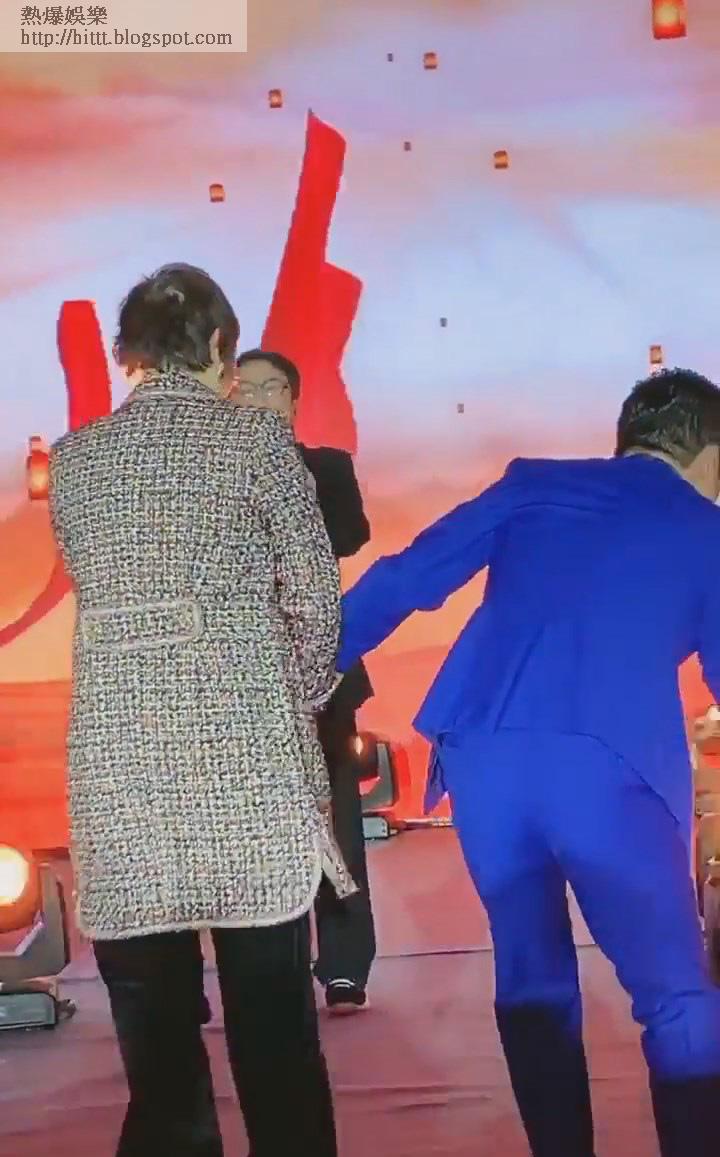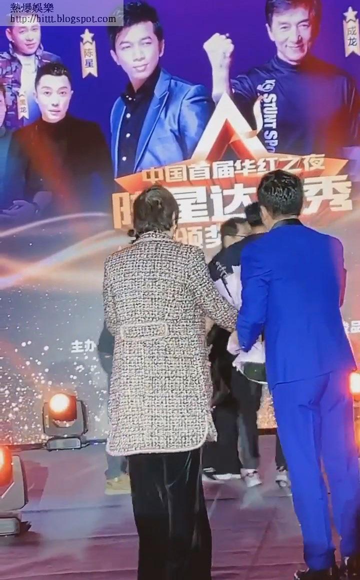 之後又有一個着住藍色西裝又係疑似老細級人物上台,獻完花後直接走到成龍身邊畀Like 。雖然場面極度混亂,對於成龍嚟講只係濕濕碎,因為成龍曾經喺台上唱緊歌時,畀一個和尚兜腳踢埋去,依然繼續全情投入地唱。