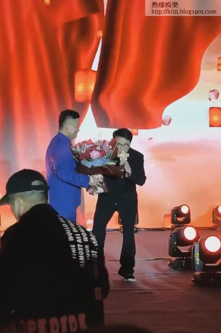 之後又有一個着住藍色西裝又係疑似老細級人物上台,獻完花後直接走到成龍身邊畀Like 。雖然場面極度混亂,對於成龍嚟講只係濕濕碎,因為成龍曾經喺台上唱緊歌時,畀一個和尚兜腳踢埋去,依然繼續全情投入地唱。
