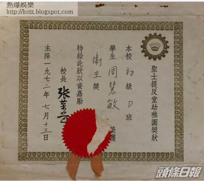 【時光倒流50年】Post人生第一個獎狀 53歲周慧敏竟然記得幼稚園點滴