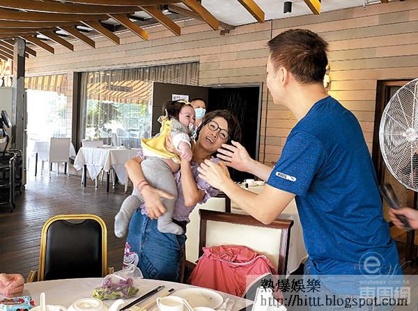 日前,約中午一時,本刊在大埔的一個露天茶座,發現Baby、鄧秋雄以及曾航生三人茶敘,席間還有一個約七、八個月大的得意BB女,據悉一直希望湊個好字的Baby,三年前契了一個契仔,最近又契了一個閨蜜的囡囡做契女,適逢最近秋高氣爽,她於是帶契女遊玩兼歎茶,不過沒有湊B經驗的Baby,似乎不太熟悉B女的生活習慣,陪玩、餵食樣樣齊,但B女一樣喊個不停,無所適從的她,最後無奈都要交給三年前生了個囡囡的曾航生,收拾殘局。