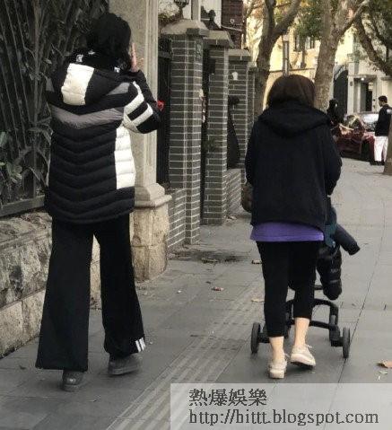 身處上海的奚夢瑤,日前被網民發現帶BB在街頭散步。(網上圖片)