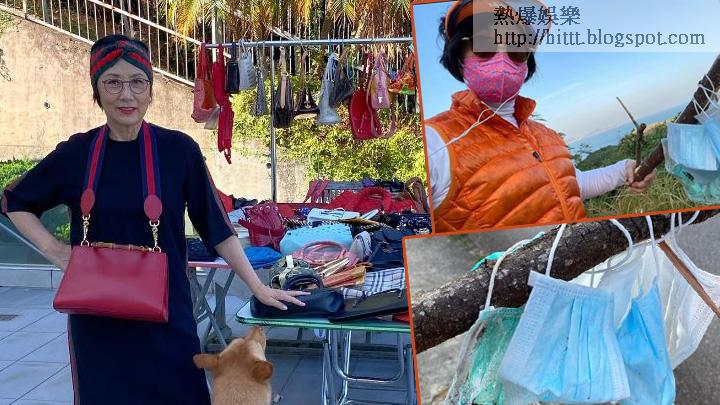 音樂會取消,阿姐多了時間留在家中,除之前頻頻在家中「曬」手袋、衫及鞋外,今日她見天氣好在清水灣寓所附近踏青,不過過程就有點不快,皆因她見到滿地口罩,阿姐更索性出手用樹枝幫手執,她在社交平台貼了一張她手持樹枝掛滿口罩的相,並在帖文留言:「今午天氣不錯,有太陽,在清水灣郊野步行一小時,本來心情幾好,但見到隨地的垃圾,仍然忍唔住,用樹枝執起啲『口罩』,唉!有啲人真係冇公德心!」