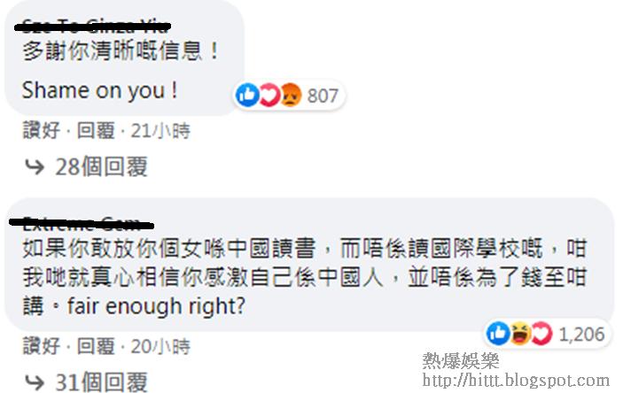 - 有人不信周柏豪真心感激國家,建議他讓女兒到國內讀書以證明愛國心之真假。
