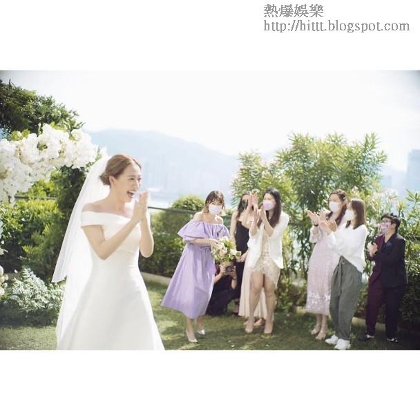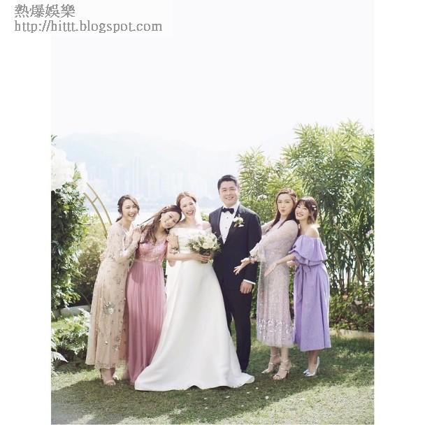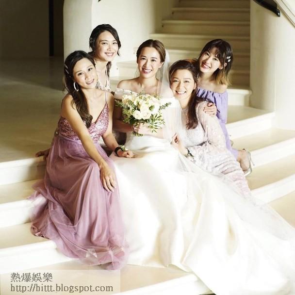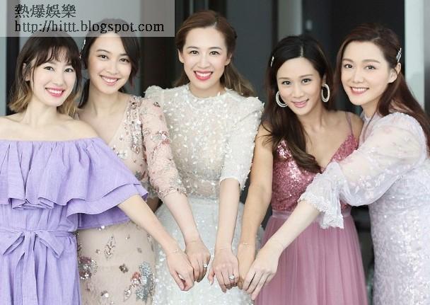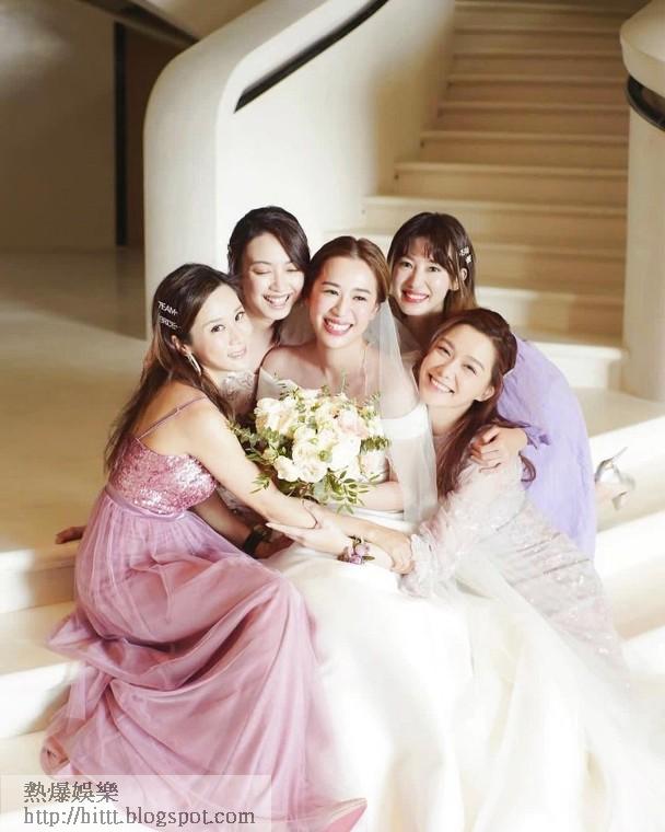 雖然啲相都係大同小異,每位姊妹都捉實新娘影單人合照,又攬又錫,感情相當好,當中終於見到蔣家旻成功接花球一刻。