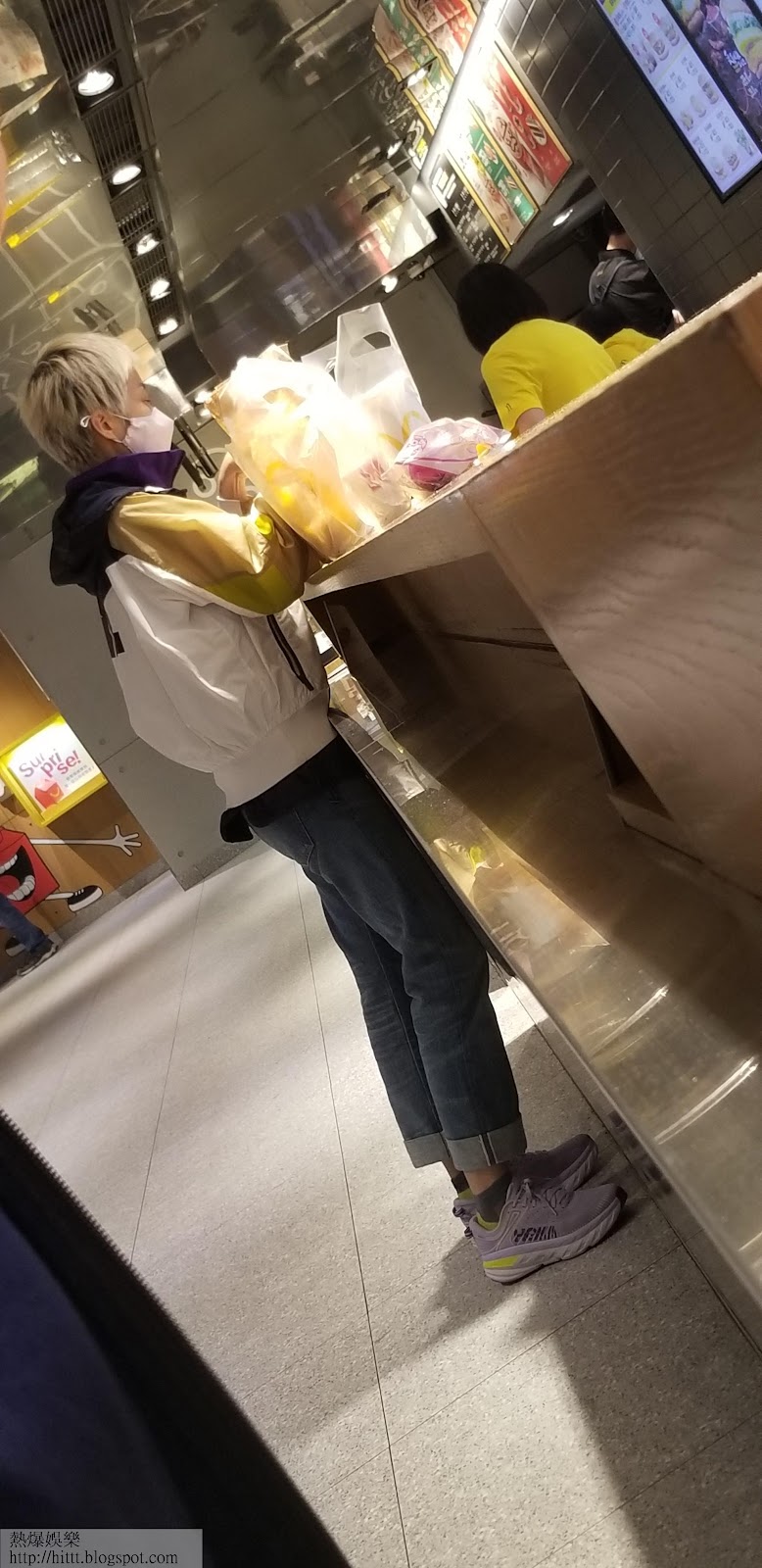 及後見兩人在商場內分道揚鑣,之後見谷祖琳行去麥當勞,她選擇用自助點餐機,見她點餐時有點疑惑,不太懂點餐過程,花了點時間才順利完成點餐,然後拿着收據坐在一旁等餐。見她坐下時,蹺起右腳坐,坐姿十分豪邁,而她不時在按電話。約不到十分鐘左右,她點的外賣餐已打包好可以取,見到有一份送玩具的兒童餐,估計是買給兩名女兒吃。她拿住兩大袋外賣,急急腳行到地下,然後行出商場外,不遠處見有一輪藍色私家車停在路邊,原來是她的老公,之前先去停車場取車等她,待她上車後,私家車即馬上駛離。