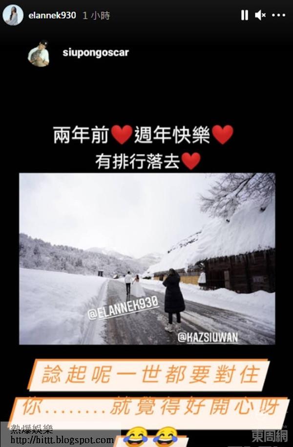 昨日係蕭唯展(前名蕭潤邦)和江伊晴(Elaine江若琳)結婚兩周年,蕭唯展在社交網分享當年在日本冰天雪地拍婚紗照的幕後花絮照片,見穿上露肩低胸婚紗的江伊晴坐在雪地上整頭,蕭唯展就黑口黑面、拿住大褸在旁邊站着,難怪蕭唯展爆粗指天氣凍到連自己都冇心機影相,但老婆食過夜粥不覺凍,認真夠薑。