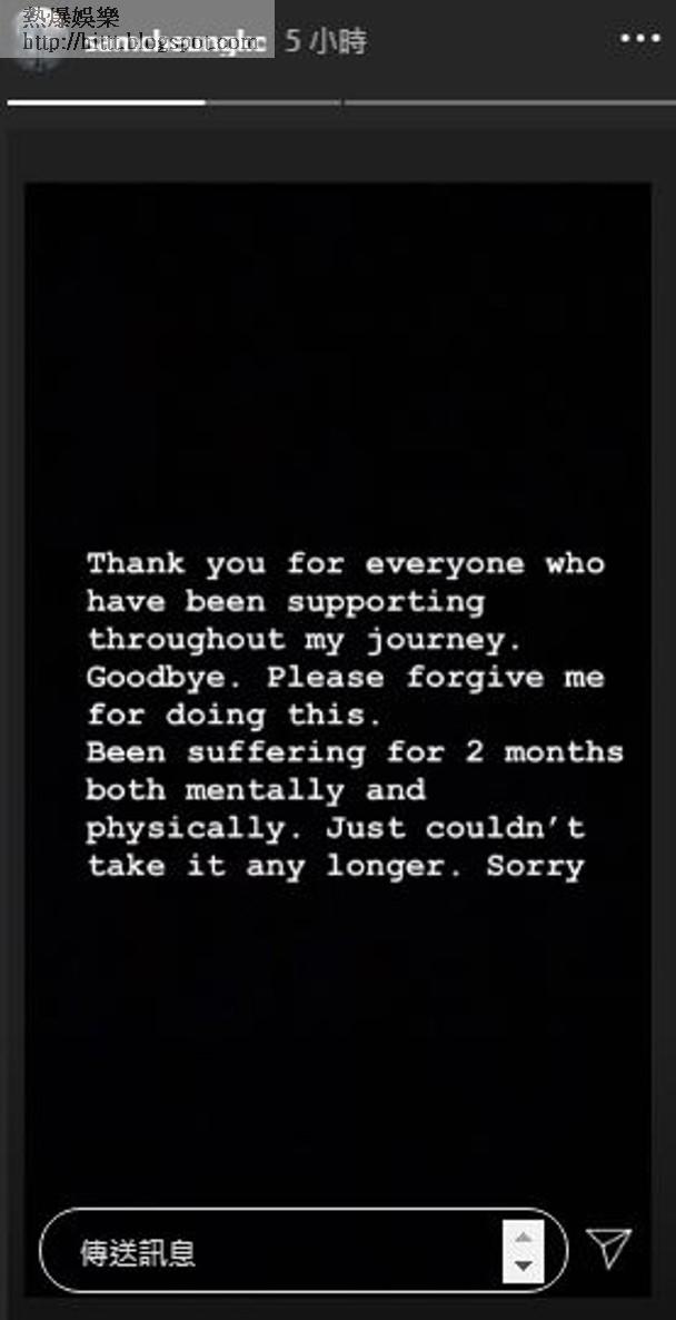 據悉,死者為落選港姐廖慧儀的前男友Sam,張在事發前曾於社交媒體留言尋死,以英文感謝在人生路途上曾支持過自己的人,並透露在過去兩個月精神上及身體上均「受到折磨」,表示再也無法忍受,又留下「再見」、「請原諒我」等字句。