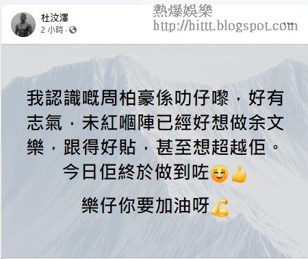 周柏豪終極表忠,杜汶澤曲線讚他終於超越余文樂。(網上圖片)
