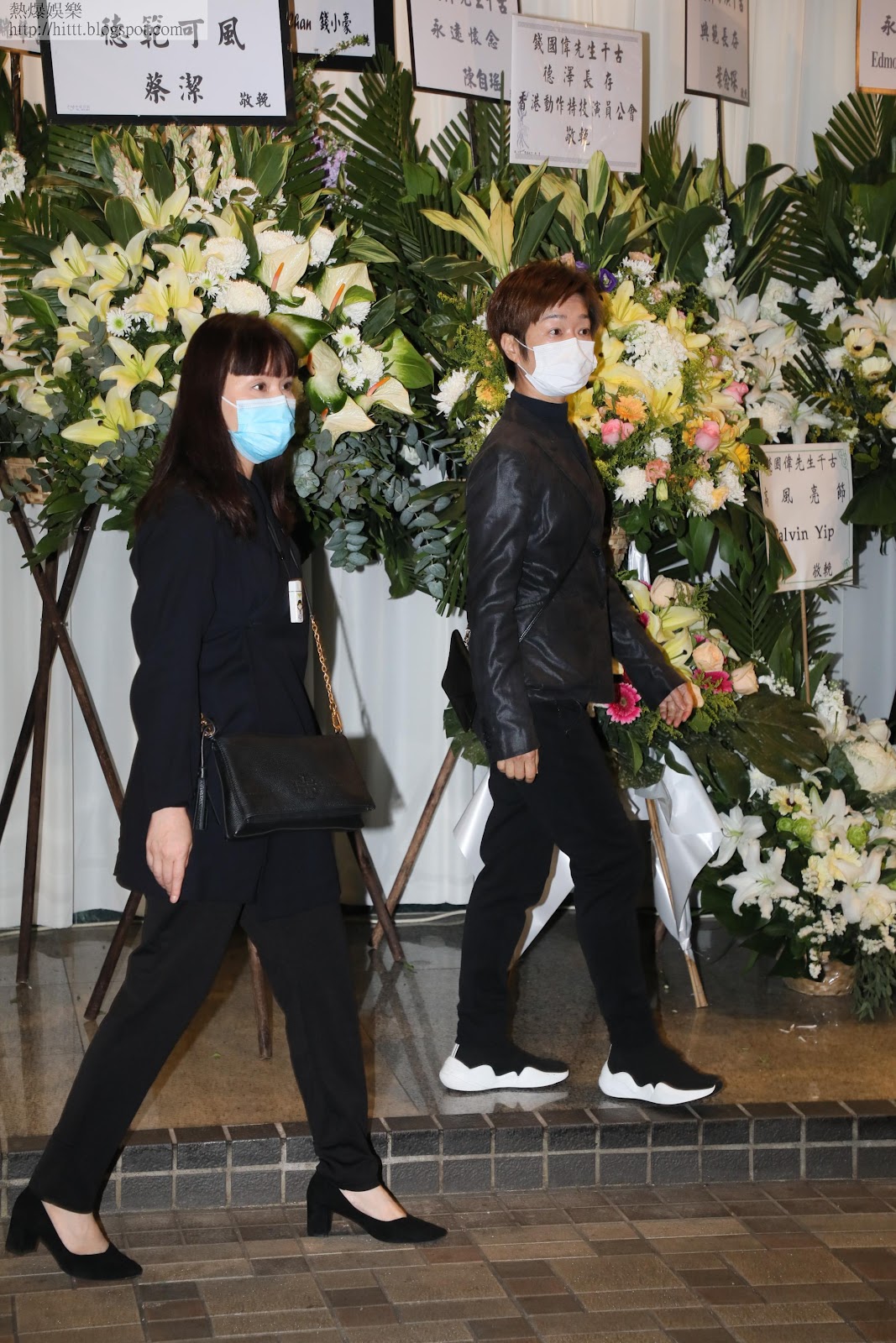 靈堂外兩側放滿親友的花圈,其中三大天王劉德華、張學友和郭富城所送花圈更放在當眼處。(蘋果日報)