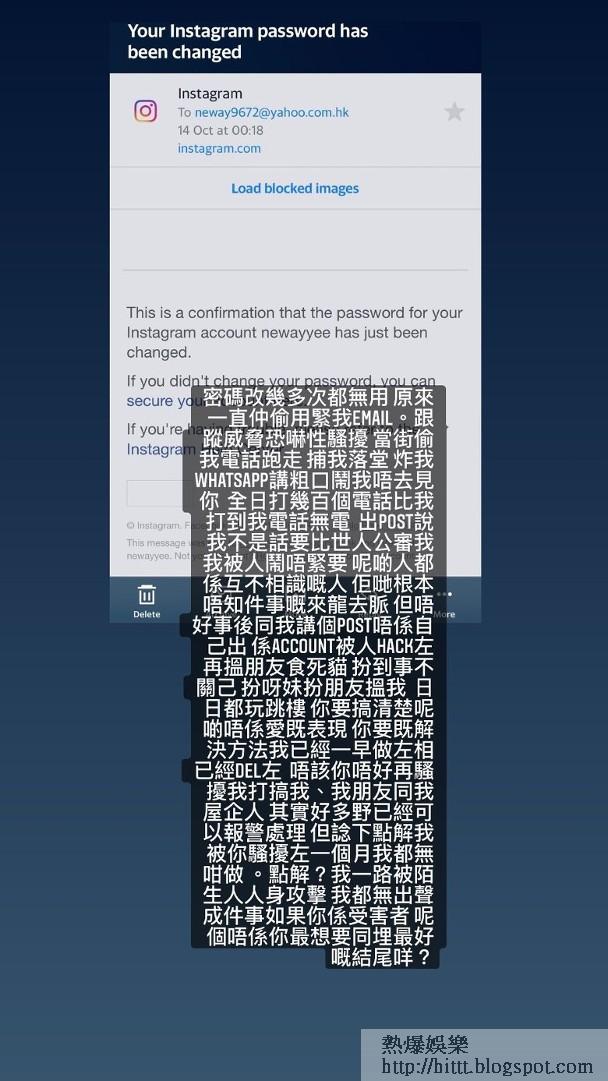 佢再指其實成件事可以報警處理,佢再作出警告叫對方唔好再騷擾佢:「你要嘅解決方法我已經一早做咗,相已經DEL咗,唔該你唔好再騷我打搞(擾)我、我朋友同我屋企人,其實好多嘢已經可以報警處理,但諗吓點解我被你騷擾咗一個月我都無咁做。點解?我一路被陌生人人身攻擊,我都無出聲,成件事如果你係受害者,呢個唔係你最想要同埋最好嘅結尾咩?」而廖慧儀舊愛Sam就上載兩張行山相,未知是否用行山療情傷?