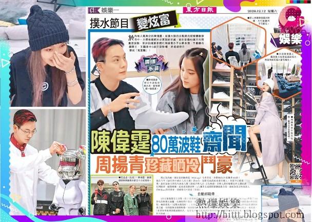 於內地人氣高企的陳偉霆,在擔大旗的自製潮流經營體驗節目中,大晒有錢都未必買到的珍藏、被炒至逾80萬元的限量版波鞋,至於拍檔富家網紅周揚青亦不忘顯身價,手戴鑽石鏈開工,又騷家中3排巨型鞋櫃,將搵錢節目變成「炫富騷」!
