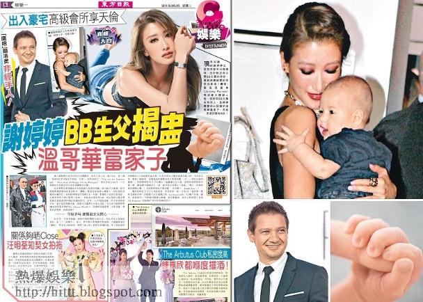 現年36歲的謝婷婷日前突然宣布已做媽咪,由於她沒有公開BB父親的身份,曾跟她傳緋聞的荷里活影星「鷹眼」 謝洛美維拿(Jeremy Renner)頓成最大嫌疑人物,但原來BB父親另有其人,是婷婷讀書時已認識的溫哥華富家子,而她亦是於當地生B!