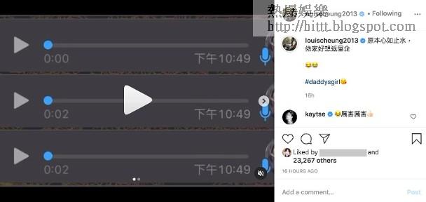 除咗老婆,「前世情人」囡囡張靖就係張繼聰最大死穴!佢晒出囡囡「有冇掛住我?」、「陣間發夢見」等萌爆錄音,冧到咁難怪在外專心工作嘅佢留言話:「原本心如止水,依家好想返屋企。」謝安琪留言「厲害厲害」,指自己冇咁嘅本事,似乎呷老公醋喎!