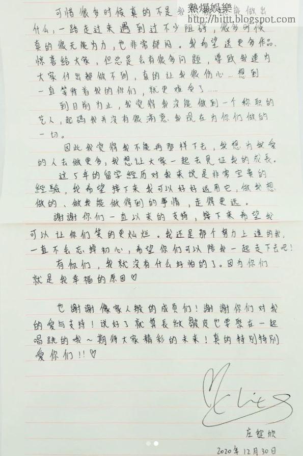 而韓國女團CLC的香港成員莊錠欣(Elkie)於2016年加入組合,不過上周五就突然爆出她跟韓國CUBE事務所解約的消息。當時由微博方面傳來其解約的消息,同時網上亦曝光了由大陸的律師發出的律師信,解約的消息傳開後,香港網民都好奇她是打算「回國」抑或「回港」發展。今日Elkie終於蒲頭更新IG,公開分別用簡體字、英文及韓文寫的親筆信,交代解約一事,提到過去數年遇到不少阻礙,希望之後可以做想做的事及走得更遠。