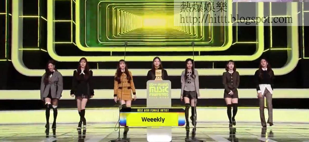 及後就先後輪到Jessi及華莎表演,表演完畢後就頒發最佳男女新人,最佳男新人由天團BIGBANG師弟團Treasure奪得,他們在台上答謝YG事務所及fans。至於最佳女新人則落在Weeekly身上,她們表示能夠獲獎覺得十分光榮。
