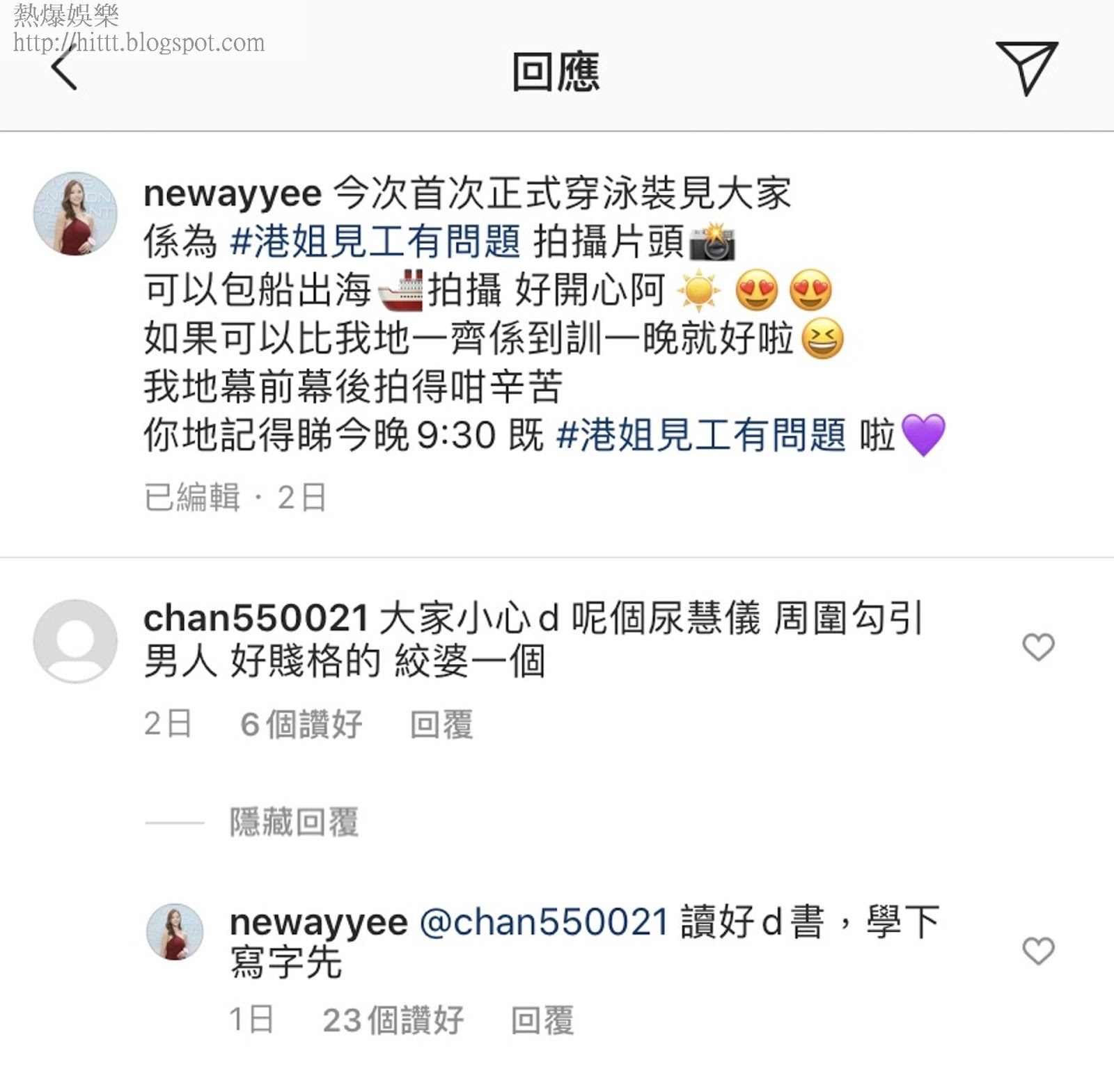 除了紋身外,她又試過與網民隔空罵戰,有人留言指她:「大家小心啲呢個尿慧儀,周圍勾引男人,好賤格的,姣婆一個。」當時Sam還與她一起反擊對方,而她亦直言自己不受影響,甚至沒有關掉留言功能。到了今年10月,男友Sam自爆被狠飛,女方一口氣刪除昔日的合照,再度惹來網民狂插:「一入娛樂圈,即飛男友」、「睇到啲話有條件就搵個更好嘅人真係好恐怖,祝你哋以後畀人戴十頂綠帽」、「入娛樂圈,就爆啲咁嘢,你真係唔荒做得耐,自毁前途」等等,不過廖慧儀一於懶理,繼續在IG出post。