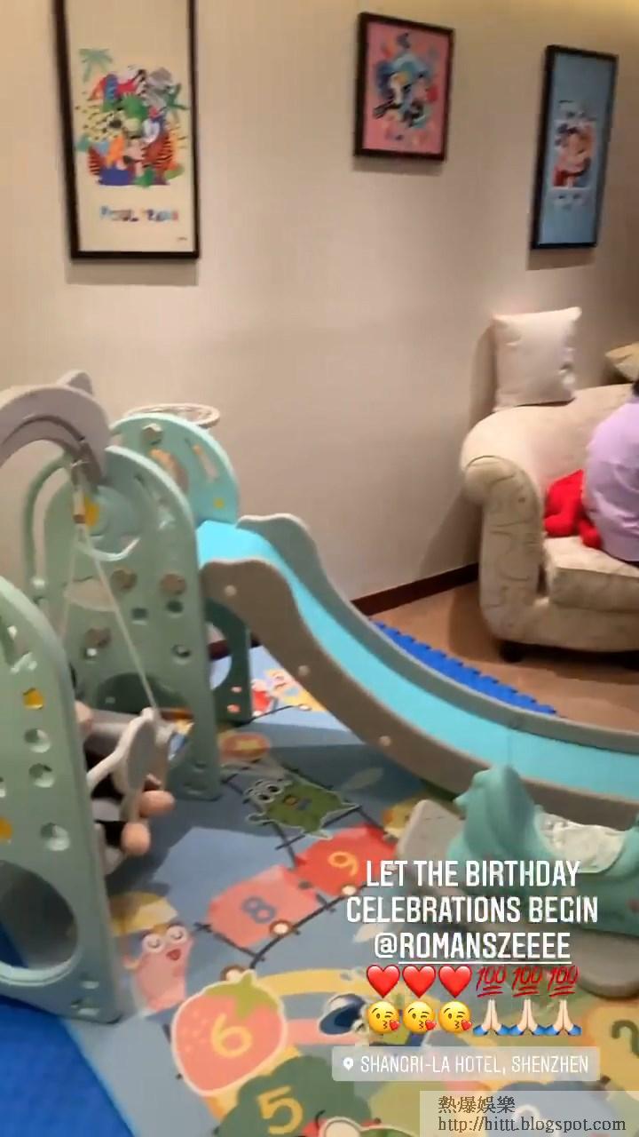 今日是Roman的一歲生日,Toby在囝囝的IG貼出慶祝生日照,他們一家三口在深圳某酒店為兒子開生日會,現場有很多氣球佈置,另設一個遊戲角落,有滑梯及其他玩具等,Roman一入房見到佈置,開心甜笑。當他被爸媽抱着合照時,Roman見到氣球很開心,向上伸手,似乎想拿到氣球,笑得合不攏嘴。滿一歲的Roman已經企得好穩陣,當他大笑時,還可以見到新長出的乳齒,十分可愛。