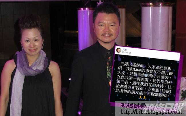【失婚已經好傷】艾威fb出文力證分居不涉第三者 老婆Lisa朋友代回應:不捨18年感情 #艾威