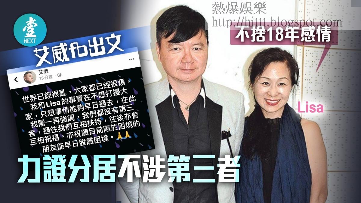【失婚已經好傷】艾威fb出文力證分居不涉第三者老婆Lisa朋友代回應:不捨18年感情1小時前早前本刊獨家披露,61歲的艾威與老婆Lisa結束18年婚姻 ...