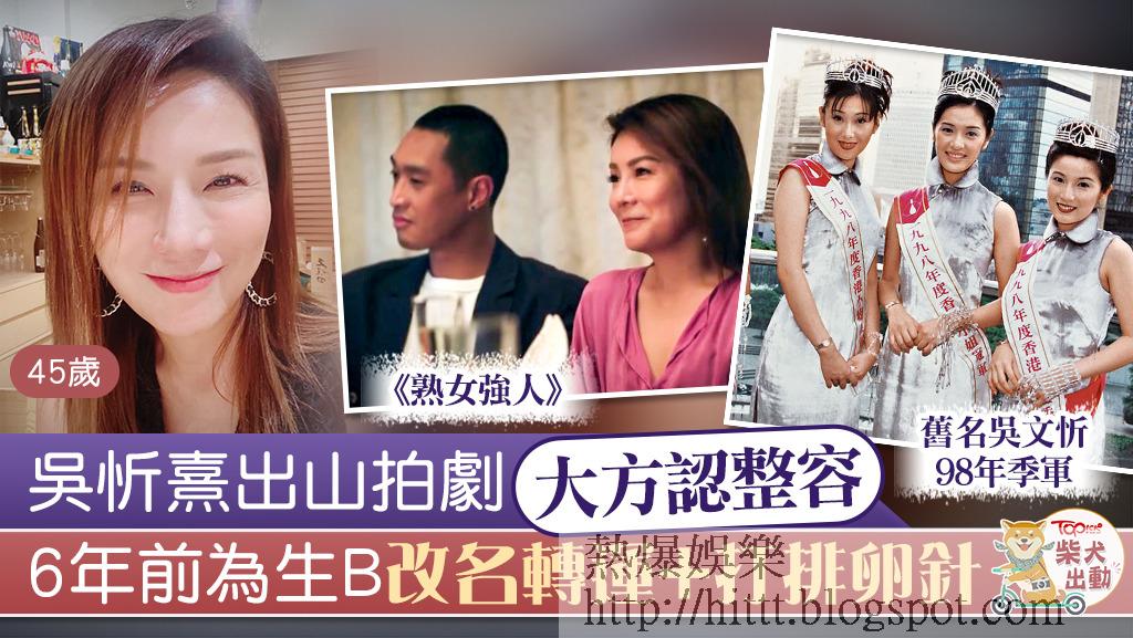 ▲吳忻熹曾大力承認整容。1998年度香港小姐季軍吳忻熹(前名吳文忻)久別觀眾,最近在ViuTV劇集《熟女強人》亮相。現年45歲的吳忻熹保養得宜,在《熟 ...