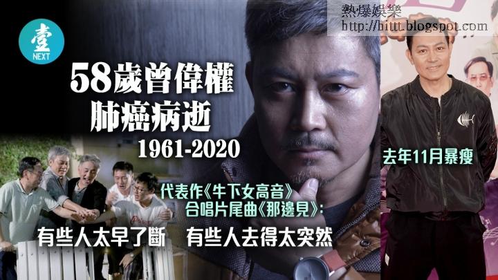 曾偉權近日都傳出他肺癌病危,文雪兒今日在FB證實他的死訊,終年58歲。曾偉權生前與吳岱融、歐瑞偉等主演大台劇集《牛下女高音》,一班中佬合作愉快,曾偉權 ...