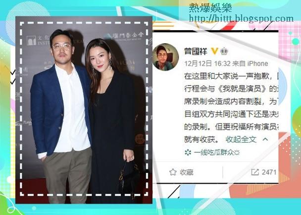 曾國祥:曾國祥退出大陸綜藝節目:鑑於防疫情況… #曾國祥