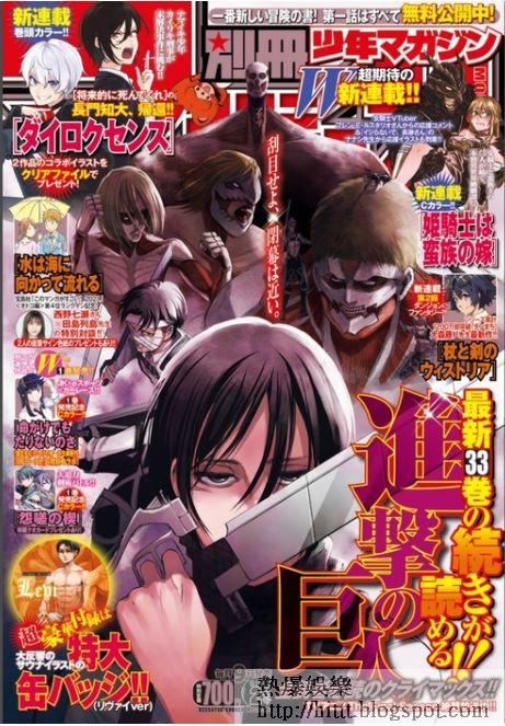 至於另一套風靡全球的神級動漫《進擊的巨人》,宣佈原著漫畫會在4月發行的《別冊少年Magazine 5月號》中刊出大結局,11年半的故書終劃上句號。《進擊的巨人》是漫畫家諫山創的大熱作品,2009年於《別冊少年Magazin》連載後大受歡迎,製作成電視動畫後把熱潮推至高峯,並拍成真人版電影由水原希子和已故男星三浦春馬擔任主角。