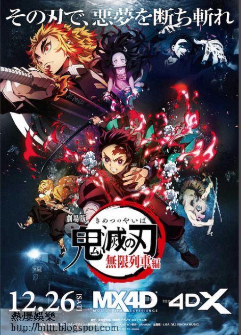 《鬼滅之刃劇場版 無限列車篇》在日本影壇創下票房神話,自去年10月於當地開畫後,至今已連續12個星期登上票房榜冠軍,累積2548萬4681入場人次,勁收346.42億日圓(約26.05億港元),上月已打破動畫大師宮崎駿2001年名作《千與千尋》創下的316.8億日圓(約23.70億港元)紀錄,取代成日本史上最賣座電影之冠。
