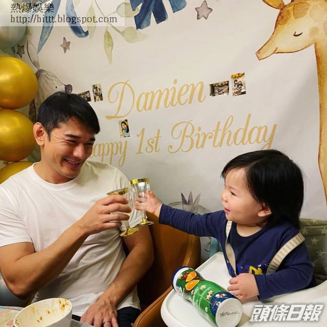 孻仔孻心肝,除了一家五口合照外,祥興還跟Damien咀嘴,又碰杯慶祝,父子溫馨甜蜜,一家幸福滿滿。