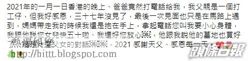 吳綺莉日前在社交網分享一張陳年照片,表示今年元旦收到了37年沒見面的父親來電問候,她表示:「三十七年沒見了,最後一次見面也只是在馬路上遇到。」吳綺莉指自己與爸爸分開時,還是一個被媽媽用手抱着的小女孩。她說:「您叫我要小心身體,我跟他説您女兒快五十啦、我還好您放心,他跟我說他的墓地也買好了,這是甚麼父女的對話,2021 感謝天父、感恩每一天。」