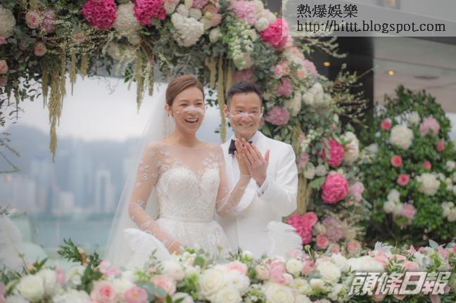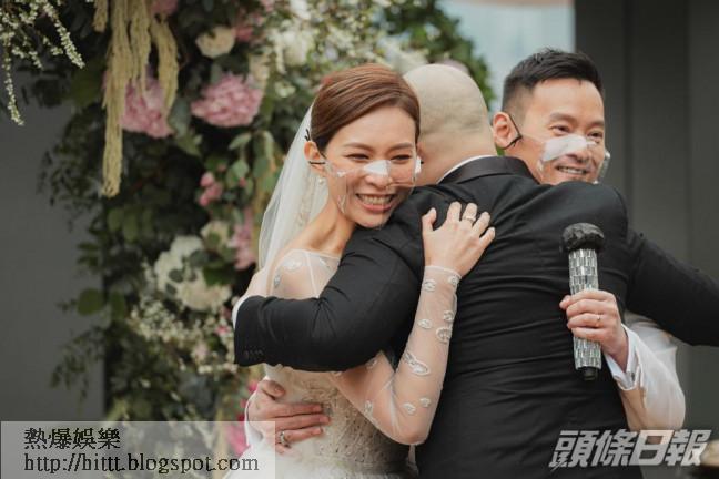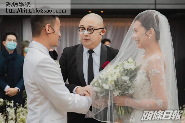 由於疫情及限聚令的關係,當日只邀請20位親朋好友到場見證,簽紙儀式下午於戶外場地進行,眾人均戴上口罩防疫。一開始,撮合一對新人的林盛斌(Bob)充當「外父」,牽住穿透視婚紗的Queenie進場,並將女方交托到Jason手中,最後3人感動相擁。簽紙和宣誓的過程中,一對新人明顯眼濕濕,直到交換戒指Queenie始展露笑容,幸福滿瀉。受訪時,Queenie表示最難忘Jason揭頭紗後,輕輕吻她額頭的一刻,感覺好溫馨。