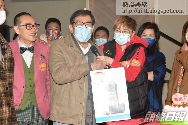 胡楓(修哥)今日(18/1)89歲生日,他回電視城為《愛.回家之開心速遞》開工,高層曾勵珍和樂易玲,與一眾藝員為修哥切蛋糕慶祝,修哥笑言為兩餐生日要開工,希望《愛.回家》再多做10年。他又爆湯盈盈10年前台慶抽到1萬元獎金,答允請他飲咖啡,但一直未有兌現,笑指盈盈不捨得,湯盈盈特別送了一部咖啡機給修哥。