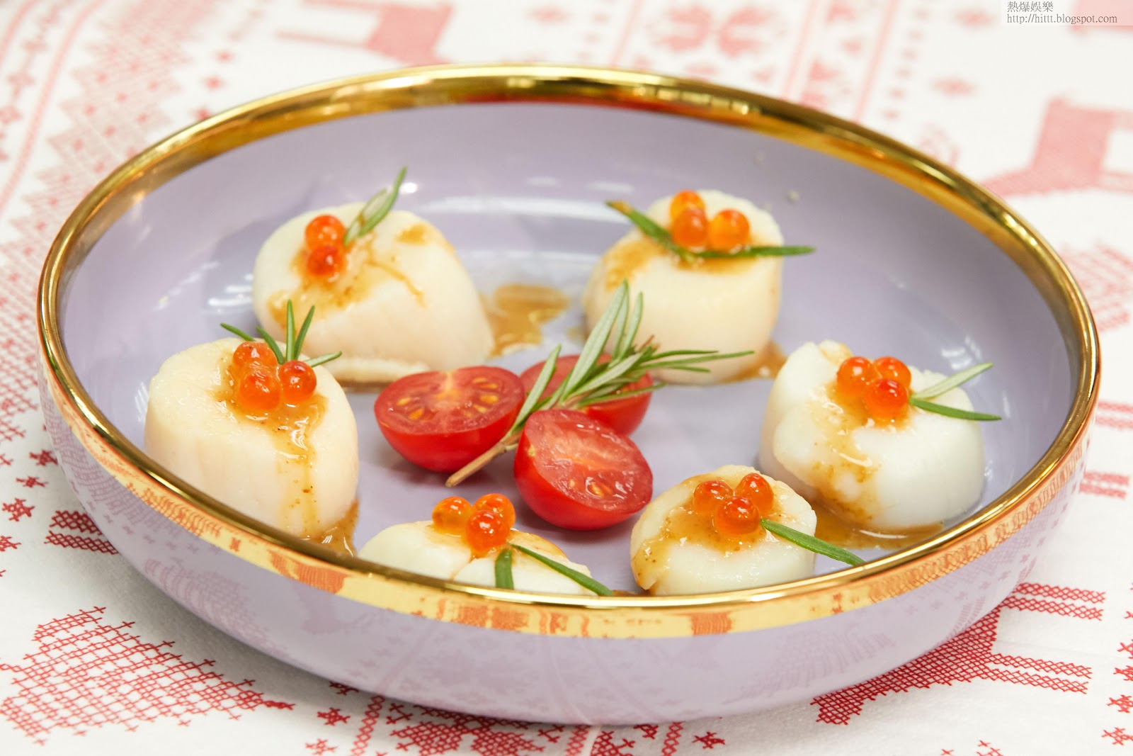 《頭盤: 香煎帶子伴三文魚籽 》