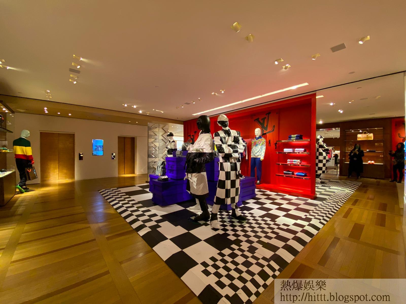 新裝前日全球正式上市,廣東道店放置了主題的黑白格子和原創公仔裝置,男裝總監Virgil Abloh一向充滿想像力,春夏男裝系列,他從自己的少年視角出發,運用催眠、虛構,設計出卡通人物「Zoooom與朋友們」的五個角色,加入LV經典標誌性Damier方格。手袋及西裝吊上勾織的原創中國龍、Teddy bear,青蛙等公仔(不能拆下呀!),充滿繽紛童趣.而黑白格子或彩虹版 monogram亦被放大、扭曲、變形,在針織上衣,外套上變出抽像味道.回收及可持續是LV奉行的新理令,上海騷場上其中25套服裝,是以過去設計產品的回收材料製成,波鞋的部分組件亦是用上回收物料,連鞋跟位的LV logo也加入像循環再用標誌的設計。