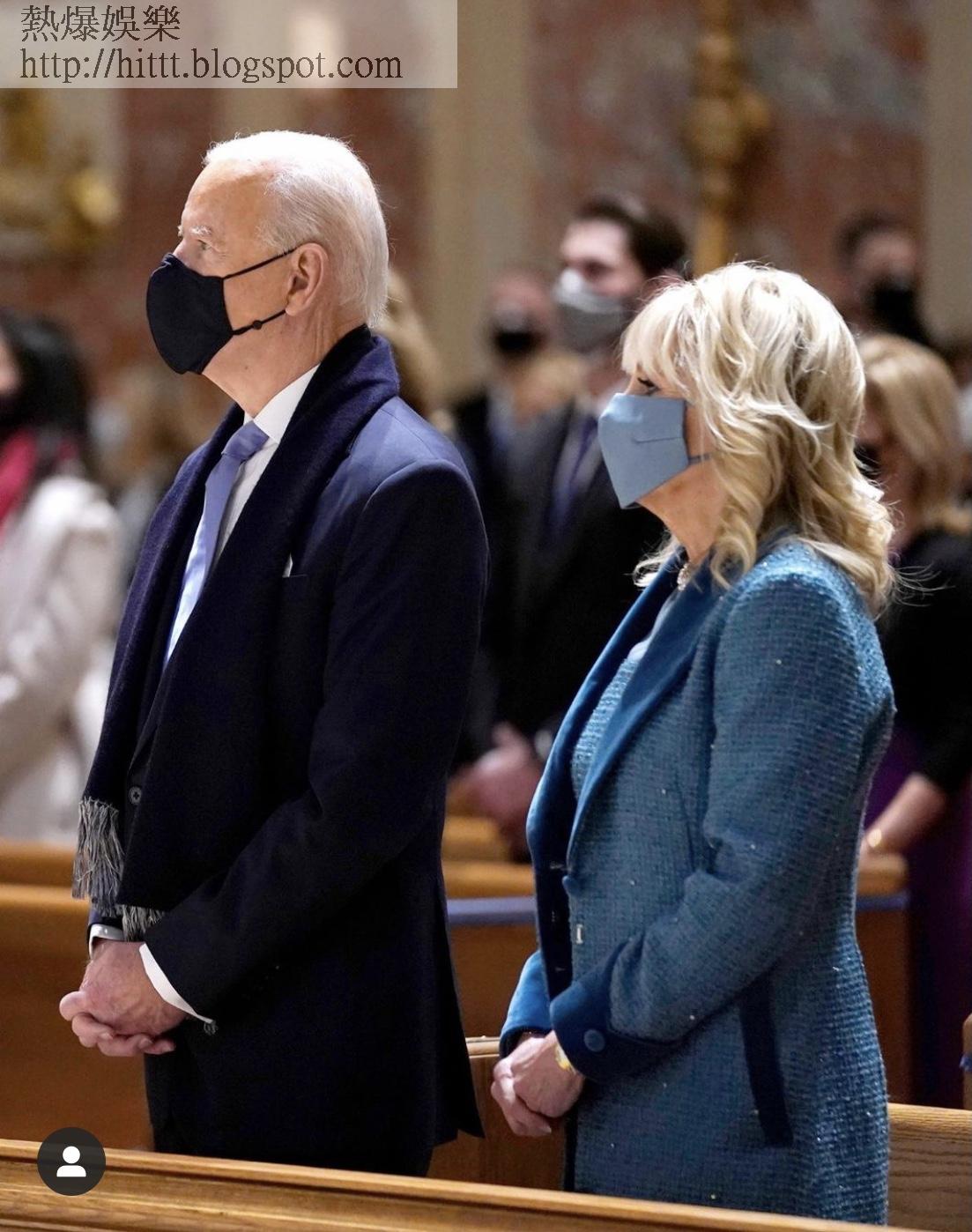 就職典禮上,拜登一如之前所報導,穿上由美國時裝巨頭、設計名師Ralph Lauren特别為他設計的西裝、大衣及粉藍呔。至於第一夫人Jill Biden 就揀了美國小眾品牌、紐約品牌Markarian的淺藍色呢絨外套及連身裙,品牌設計師Alexandra O’Neil 解釋, 「這個藍色代表信任、自信和穩定,整個造型在紐約市的衣料中心製造。」Jill Biden 搭配了同一色系的真皮手套及手袋。
