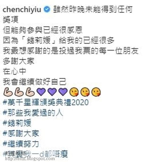 而今日,佢再上載多張性感靚相,多謝大家投佢票,不過就隻字不提老公:「雖然昨晚未能得到任何獎項,但能夠參與已經很感恩,因為『錢莉媛』給我的已經很多,我最想感謝的是投過我票的每一位朋友,多謝大家,在心中,我會繼續做好自己!」有網民留言:「王生,公開多謝你!」點知有另一網民回應:「多謝YoYo她照顧女兒,不是多謝老婆😶」另外仲有好多人留言為佢加油打氣呀!
