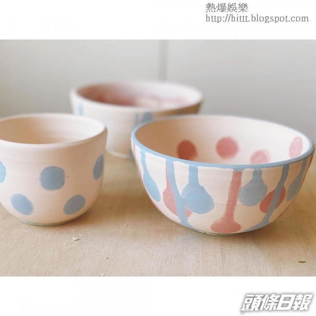 梁詠琪分享囡囡Sofia繪畫陶瓷的過程。