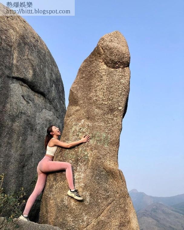 佢一見到有「J神」之稱、外形神似男士生殖器官嘅元陽石,即刻忍唔住要腿張開去迎接,用佢對長腿去箍實元陽石,着上貼身Yoga pants嘅佢「蜜桃臀」線條盡配現,兼加碼大送秋波冧「J神」:「聽講吸吓『陽』氣會增添異性緣。行咗成4個鐘終於搵到你啦~等我大大力吸多幾啖先!」唔知咁樣會唔會快啲搵到新男友呢?