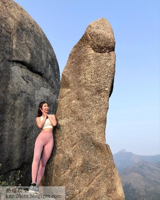 佢一見到有「J神」之稱、外形神似男士生殖器官嘅元陽石,即刻忍唔住要腿張開去迎接,用佢對長腿去箍實元陽石,着上貼身Yoga pants嘅佢「蜜桃臀」線條盡配現,兼加碼大送秋波冧「J神」:「聽講吸吓『陽』氣會增添異性緣。行咗成4個鐘終於搵到你啦~等我大大力吸多幾啖先!」唔知咁樣會唔會快啲搵到新男友呢?