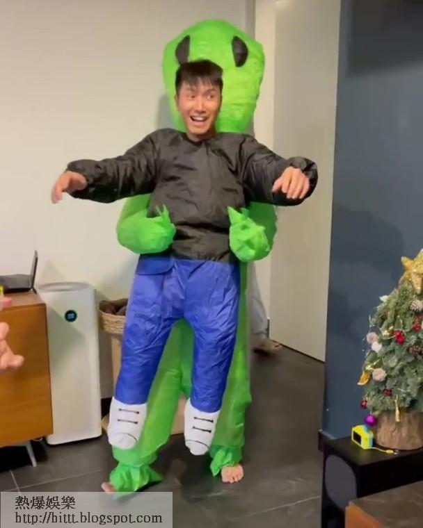 陳柏宇向來係廿四孝爸爸,呢日佢為咗氹囡囡開心,特登着上卡通充氣衫,扮成畀外星人抱走,佢仲七情上面,交足戲扮痛苦,又示意囡囡救佢,不過女兒反應勁冷淡,只微微搖頭,之後爸爸再加多幾錢肉緊,囡囡先伸手捉住爸爸,即冧到爸爸勁開心,立即攬到實狂錫,非常溫馨,不過太太符曉薇就講笑話囡囡完全唔想救佢老竇,好恐怖。