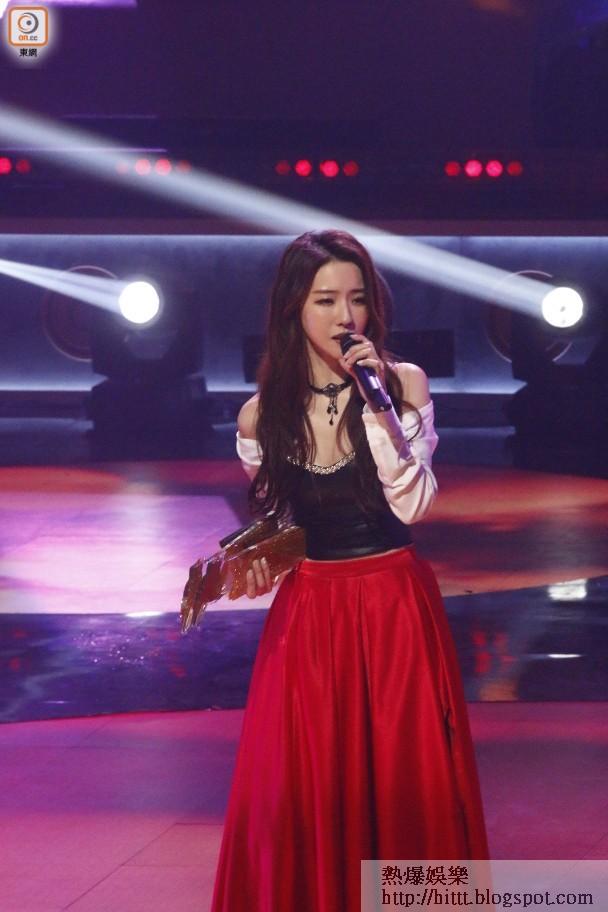 講到全晚奪得5.5個獎,成為全晚大贏家,她表示很開心:「每個獎都得來不易,多謝劇集歌曲咁受歡迎。」問到可是因為少了吳若希這位競爭對手?她即謂:「佢從來唔係競爭對手,佢係一位前輩,衷心祝佢湊BB快樂。(想佢以後湊BB就算?)唔係,有小朋友係好幸福嘅事,如果我有小朋友我都會好幸福,我依家冇,只有工作,今日我有幾個BB都幸福(指獎)。」