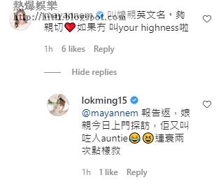 去年11月成為鄭太的何雁詩也留言給駱胤鳴,她爆老公Fred原來曾為叫人而下苦功,何雁詩說:「Fred自己對住鏡練咗好多次叫爸爸媽媽。」並加上一個笑到喊的emoji,相信何雁詩都覺得事情很搞笑。