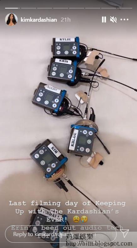 美國真人騷《Keeping Up with the Kardashians》去年9月宣佈今年內播完第20季後就會完滿結束,家族成員Kim Kardashian前日就在IG限時動態透露當日是節目拍攝的最後一天,還貼上拎着香檳的照片表示流淚。