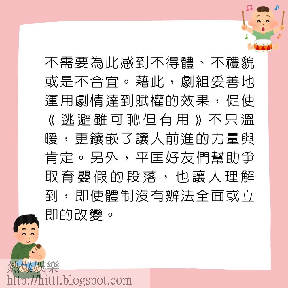 以此來說,美栗那句「理所當然」的提醒,變成一種恍然大悟,原來面對不合理時的爭取,就是一種理所當然,不需要為此感到不得體、不禮貌或是不合宜。藉此,劇組妥善地運用劇情達到賦權的效果,促使《逃避雖可恥但有用》不只溫暖,更鑲嵌了讓人前進的力量與肯定。