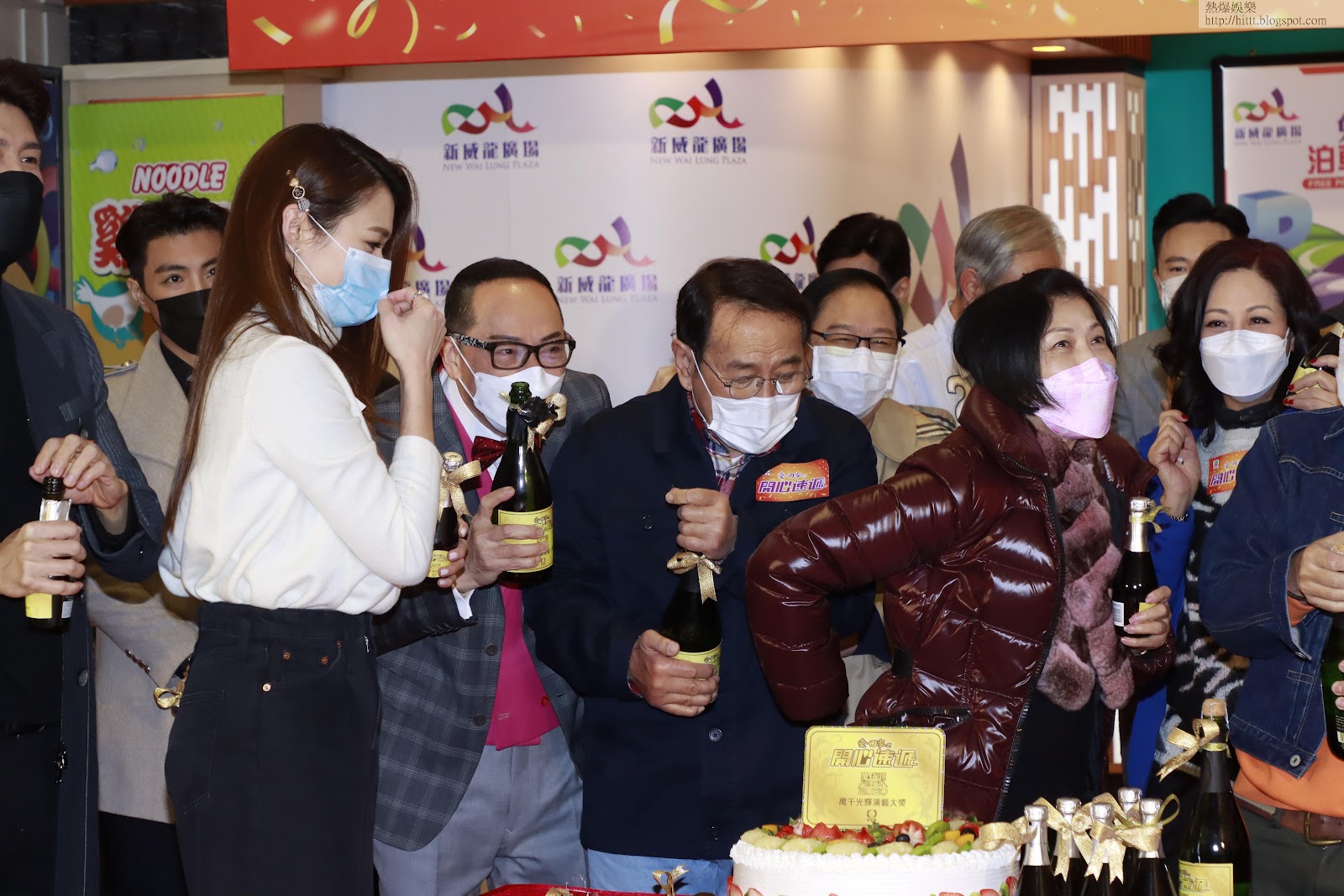 劉丹、滕麗名及袁文傑等今日出席活動,眾人在開香檳時竟然發生小插曲,酒塞疑打中TVB高層曾勵珍頭部,中頭獎!之後身邊的員工陸續開香檳,曾勵珍表情顯得相當驚慌。