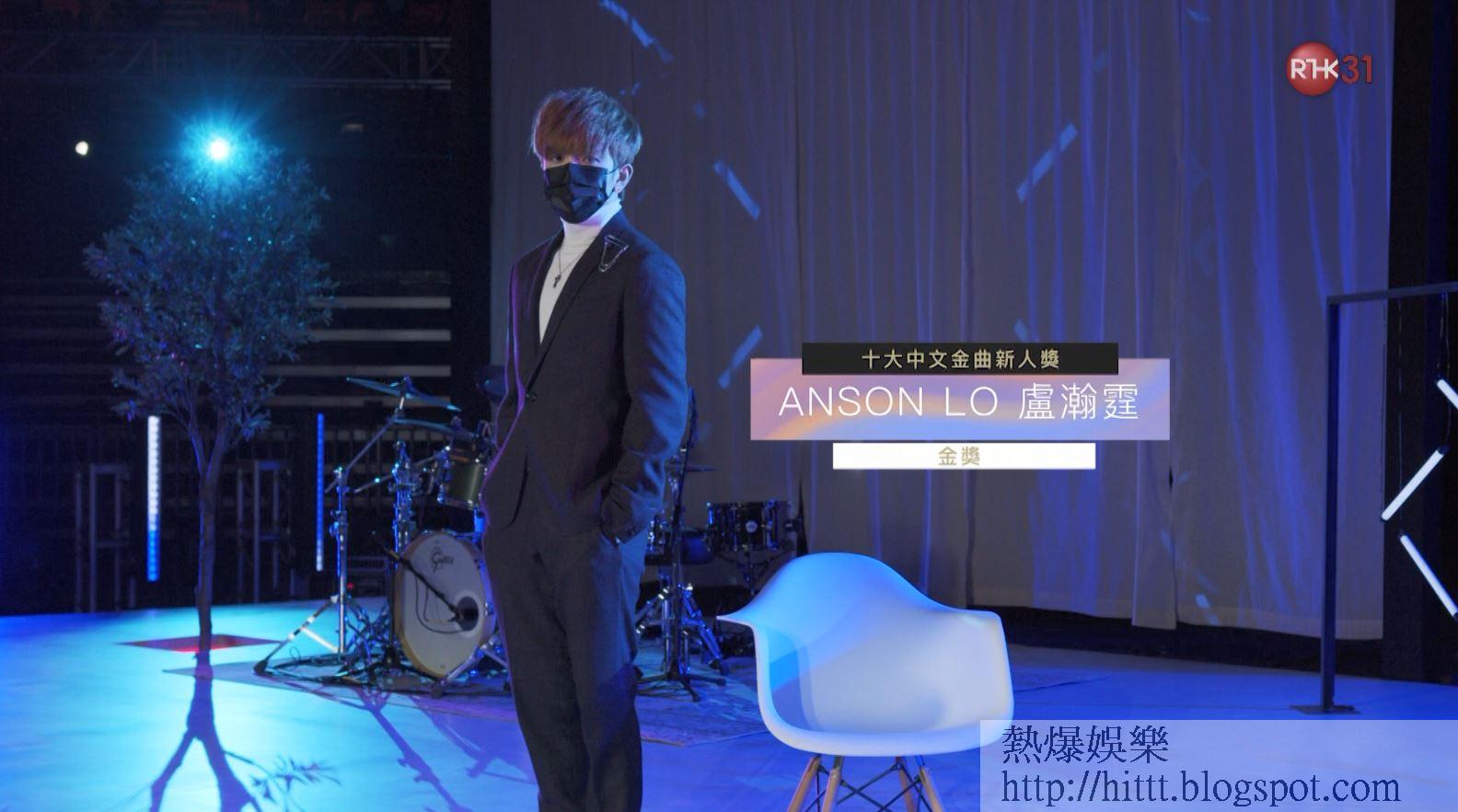新人獎三甲由ViuTV歌手包辦,Jer柳應廷獲銅獎,音樂節目《Chill Club》主持駱振偉奪銀獎,金獎是Anson Lo(盧瀚霆)。在剛過去的叱咤頒獎禮, Anson Lo屈居銅獎,今次在港台頒獎禮上力壓同門奪金,而有份角逐新人獎的Anson Kong江𤒹生卻再次飲恨!Anson Lo講得獎感受:「今年推出3三首歌,希望大家聽完可以防止或減低唔開心負面情緒感覺,今年想展示唔同一面畀大家睇,音樂無論開心唔開心,想搵朋友分享。」