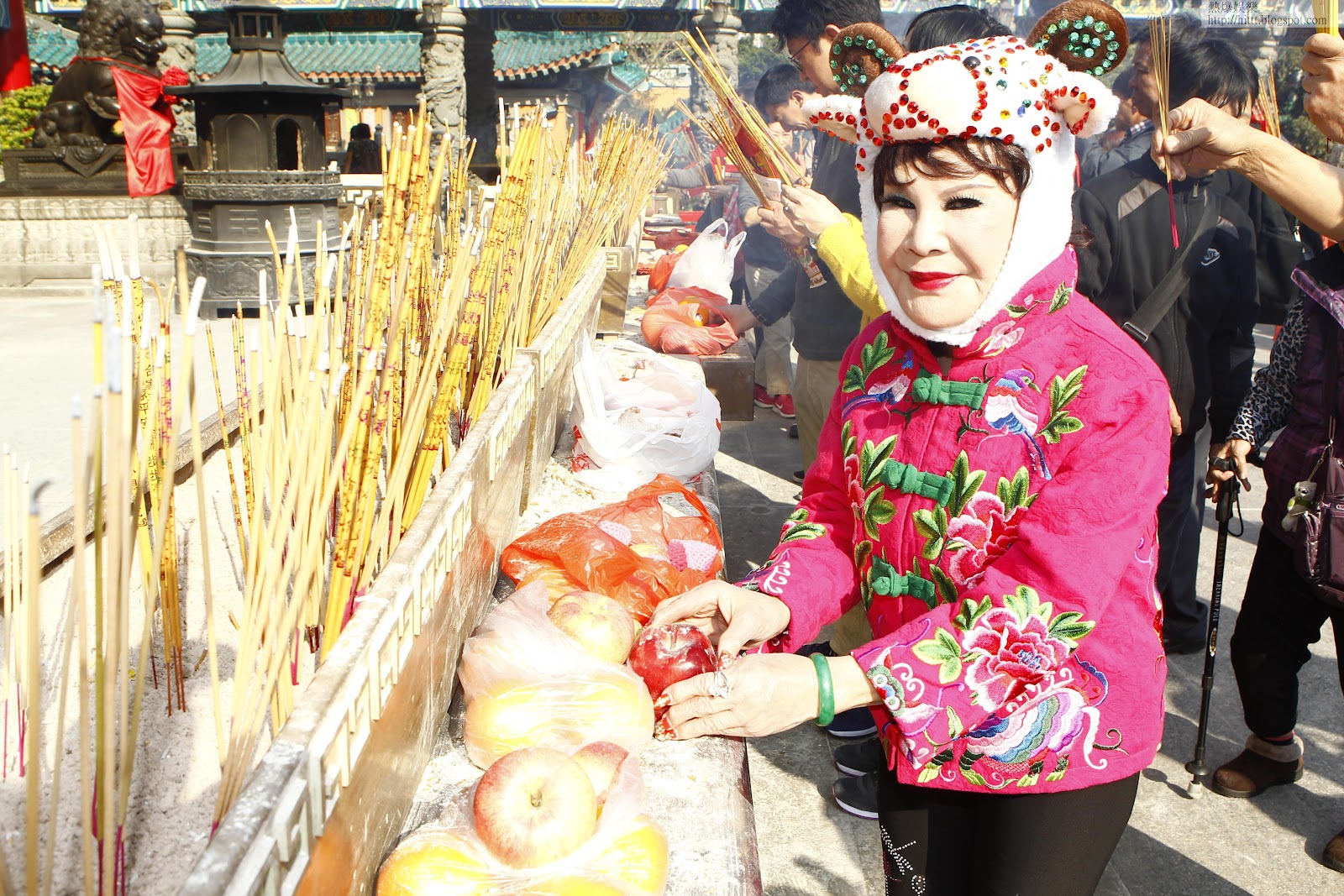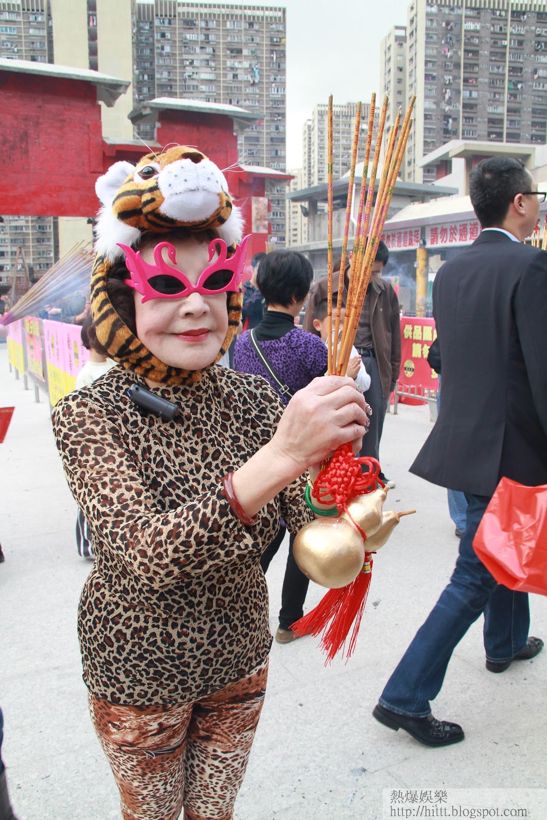 今年牛年,夏蕙BB終於儲齊一套12生肖閃卡,她一邊看過往造型,一邊說:「個個都好靚喎!兔仔好得意,胭脂馬好有活力,蛇年我頭上好多條蛇仔,老虎就虎虎生威。」夏蕙BB今年的霸氣牛魔王都毫不遜色,牛角帽配一身戲服,非常醒神,她表示度身訂做的戲服並不便宜,全身造型花了逾2萬元都在所不計,夏蕙BB至緊要夠威和搶鏡。夏蕙BB有見今年黃大仙祠取消了讓公眾年三十晚裝頭炷香的安排,她為免「斷纜」,今年索性提早出動。祠內的善信發現了「牛魔王」,即上前圍觀、拍照和集郵,甚至跟親民的夏蕙BB握手,大家異口同聲稱讚她的造型有心思,連居港的印度女子都用英文大讚「looking very nice」,尹小姐則謂牛魔王造型值95分。眼利的石小姐卻嫌夏蕙BB的牛魔王美中不足:「牛角太短,應該長啲,件衫唔錯,但你對鞋係老虎頭喎!」但石小姐還是很欣賞夏蕙BB的靚衫,忍不住伸手摸吓。