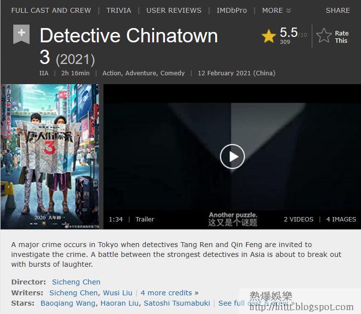 《唐人街探案3》由王寶強、劉昊然、妻夫木聰及泰國動作影星Tony Jaa孭飛,除了妻夫木聰外,還有多位日本紅星演出,計有長澤正美、鈴木保奈美、三浦友和、淺野忠信及染谷將太,電影大玩日本文化情意結,妻夫木聰與Tony Jaa在片中分別cosplay「聖鬥士星矢」及「小丸子」,結果票房一枝獨秀,令當地再吹起一片東洋熱,相信短期內也不會出現甚麼反日情緒。
