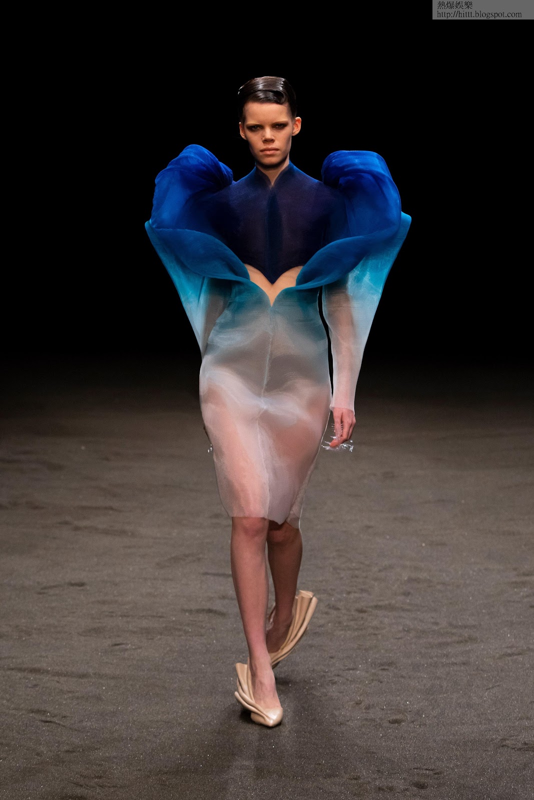 范冰冰所着的藍色裙,設計以模仿海浪流線形剪裁為主,配合漸變的藍綠色調,前衛優雅。該作品一星期才在高訂周期間發佈,要知除非是一線女星,否則很難借到高訂設計,范冰冰不但是第一個着的人,Iris Van Herpen更親自在她的IG留言俾心,足以證其地位超然依然。藍裙亦相當適合皮膚白皙的她,中空加透視細節低調性感,把頭髮盤起,更添女人味。
